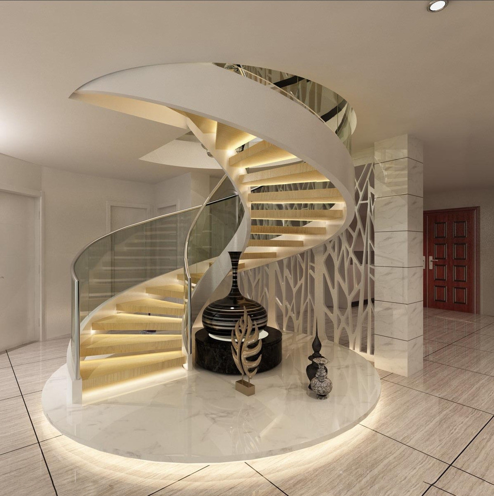 2、弧形樓梯設(shè)計美觀大方,在造型上不像直梯那樣吊板,色彩上可以和室內(nèi)色彩統(tǒng)一,也可以選擇對比色調(diào)造成強烈反差,可以達到滿意、優(yōu)美的效果。