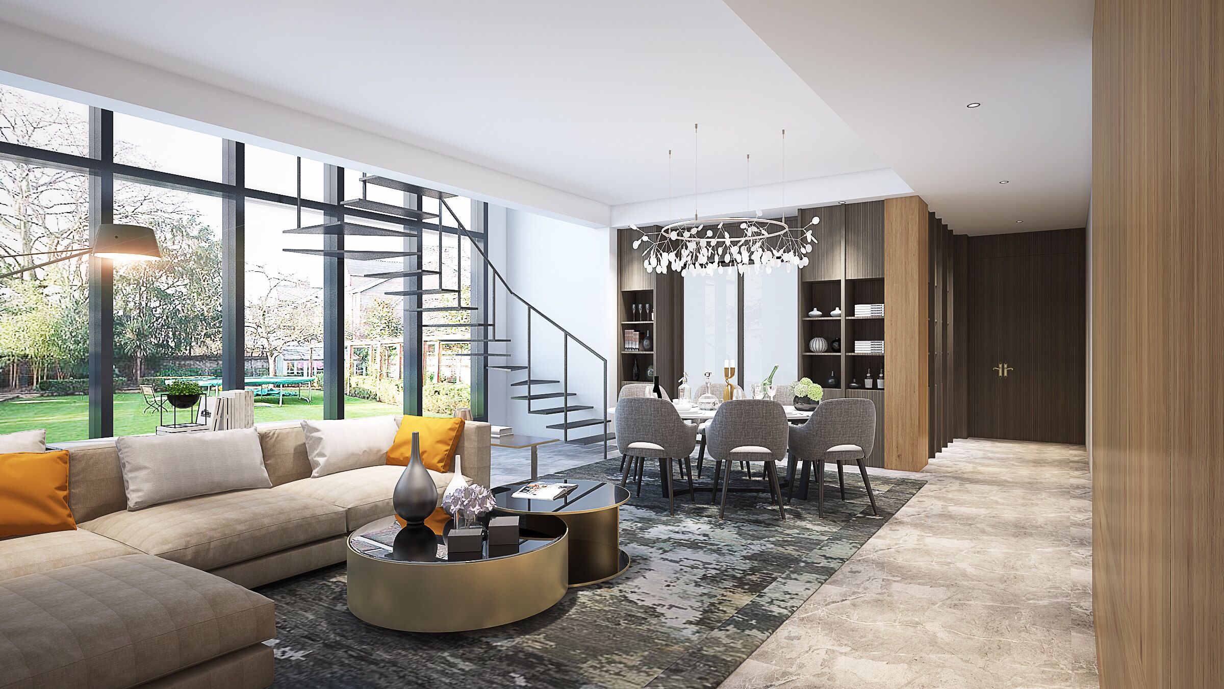 如果兩個(gè)門(mén)的距離遠(yuǎn),空間允許的話(huà)可以放置屏風(fēng),轉(zhuǎn)化場(chǎng)態(tài)。