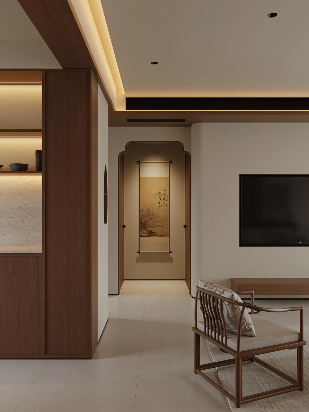 軟裝搭配盡顯巧思,木質(zhì)家具線(xiàn)條簡(jiǎn)潔流暢,承襲宋式家具的簡(jiǎn)約風(fēng)骨,卻又貼合現(xiàn)代使用需求;