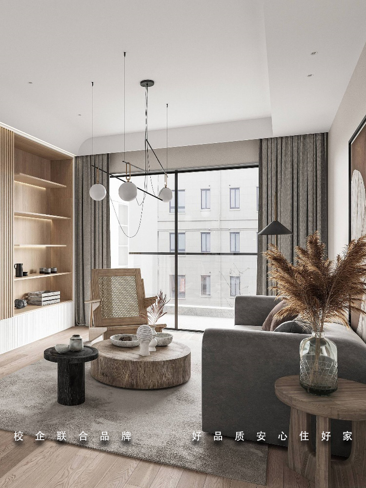 色彩選取淺木色、淺灰等低飽和度色調(diào),營(yíng)造出簡(jiǎn)潔、通透的視覺效果,一定程度上拓展了空間感。軟裝搭配簡(jiǎn)潔且貼合整體風(fēng)格,客廳的木質(zhì)家具、造型簡(jiǎn)約的燈具,與廚房簡(jiǎn)約的櫥柜、臥室的實(shí)用置物架等相互呼應(yīng),讓空間更具整體性。