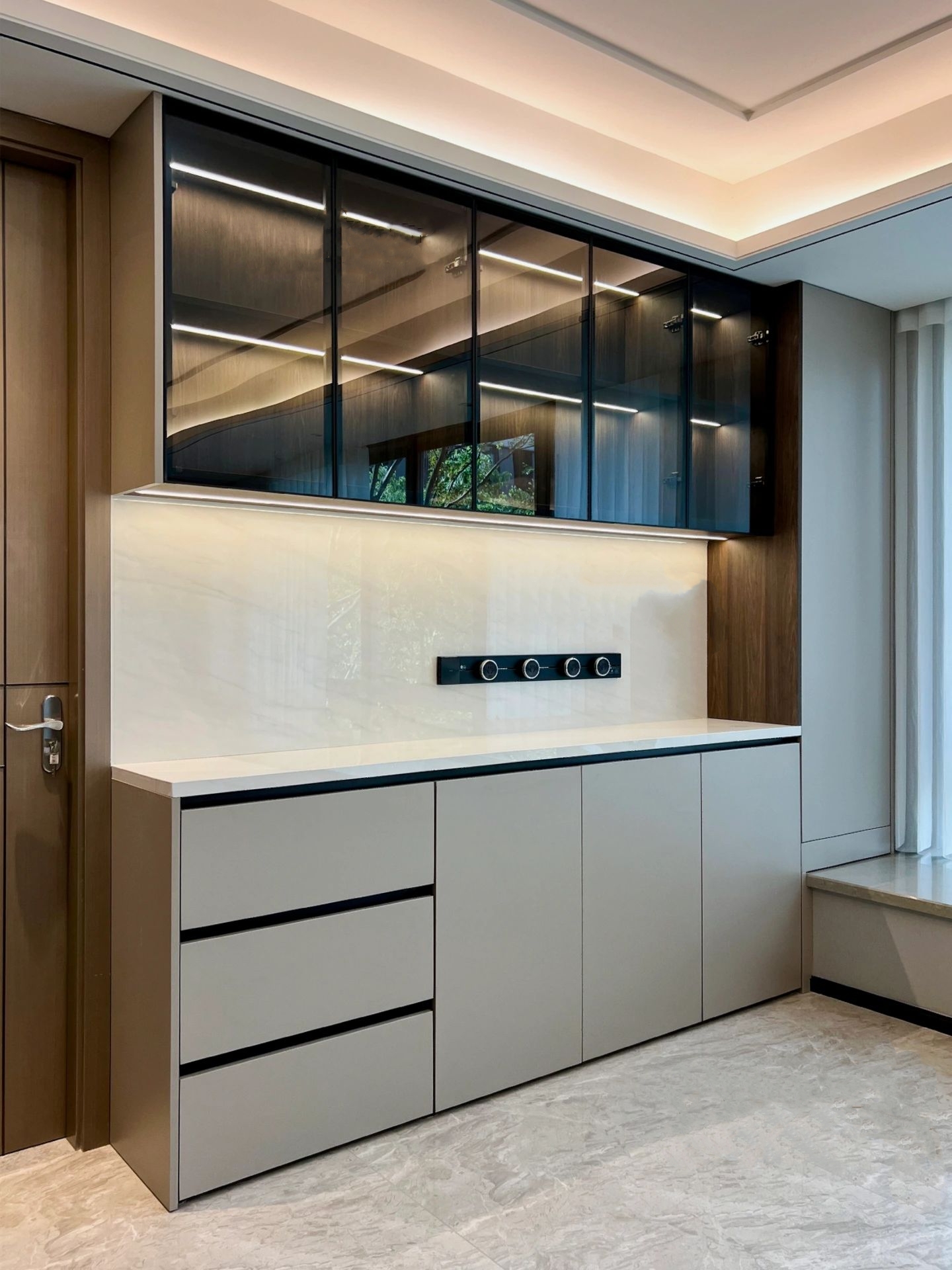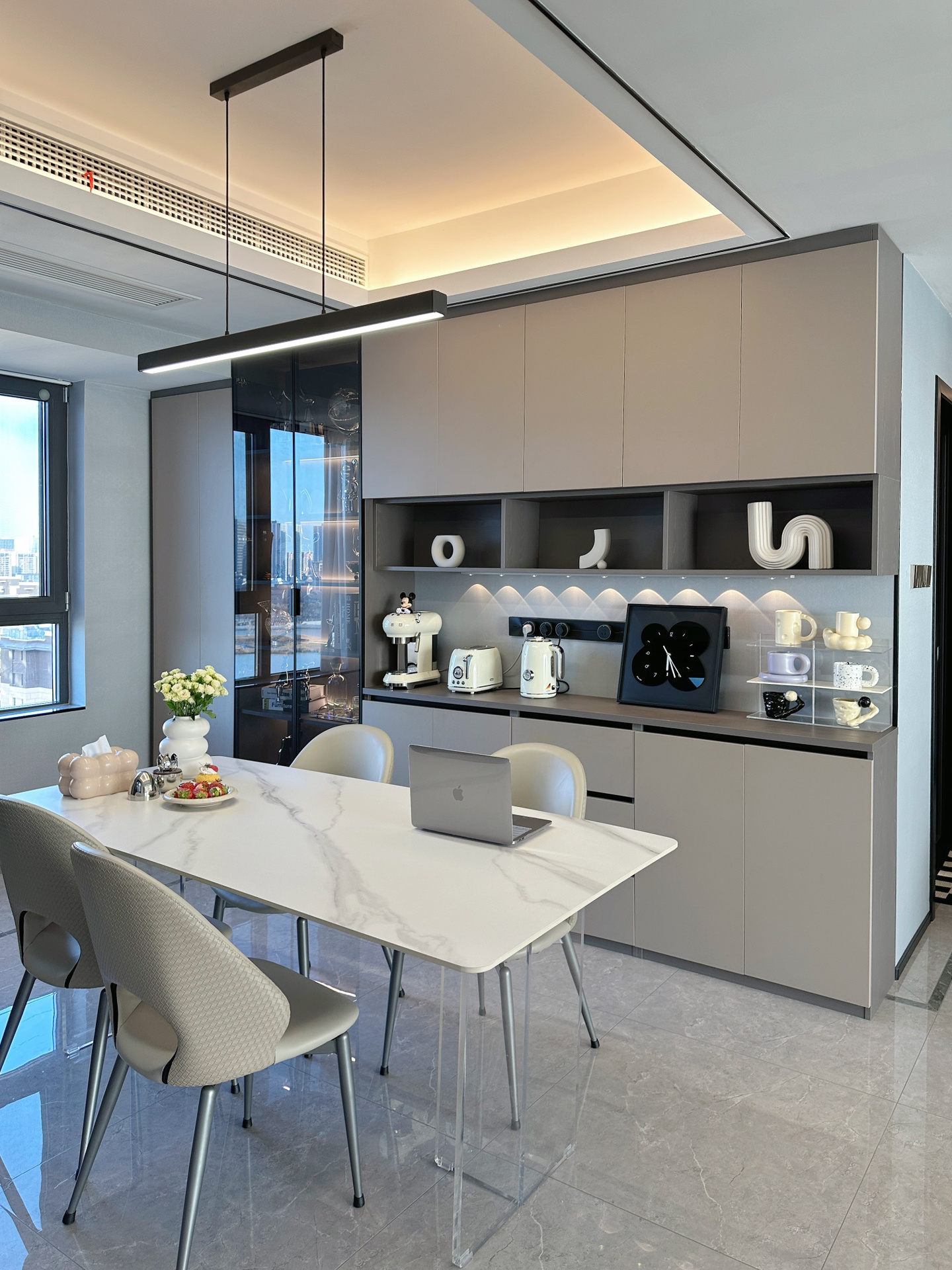 這幾款餐邊柜把 “好看又能裝” 焊在設(shè)計(jì)里:淺灰啞光面板搭配茶色玻璃門,內(nèi)置暖光氛圍燈,藏露分區(qū)清晰,精致餐具收納其中,通透又顯質(zhì)感;