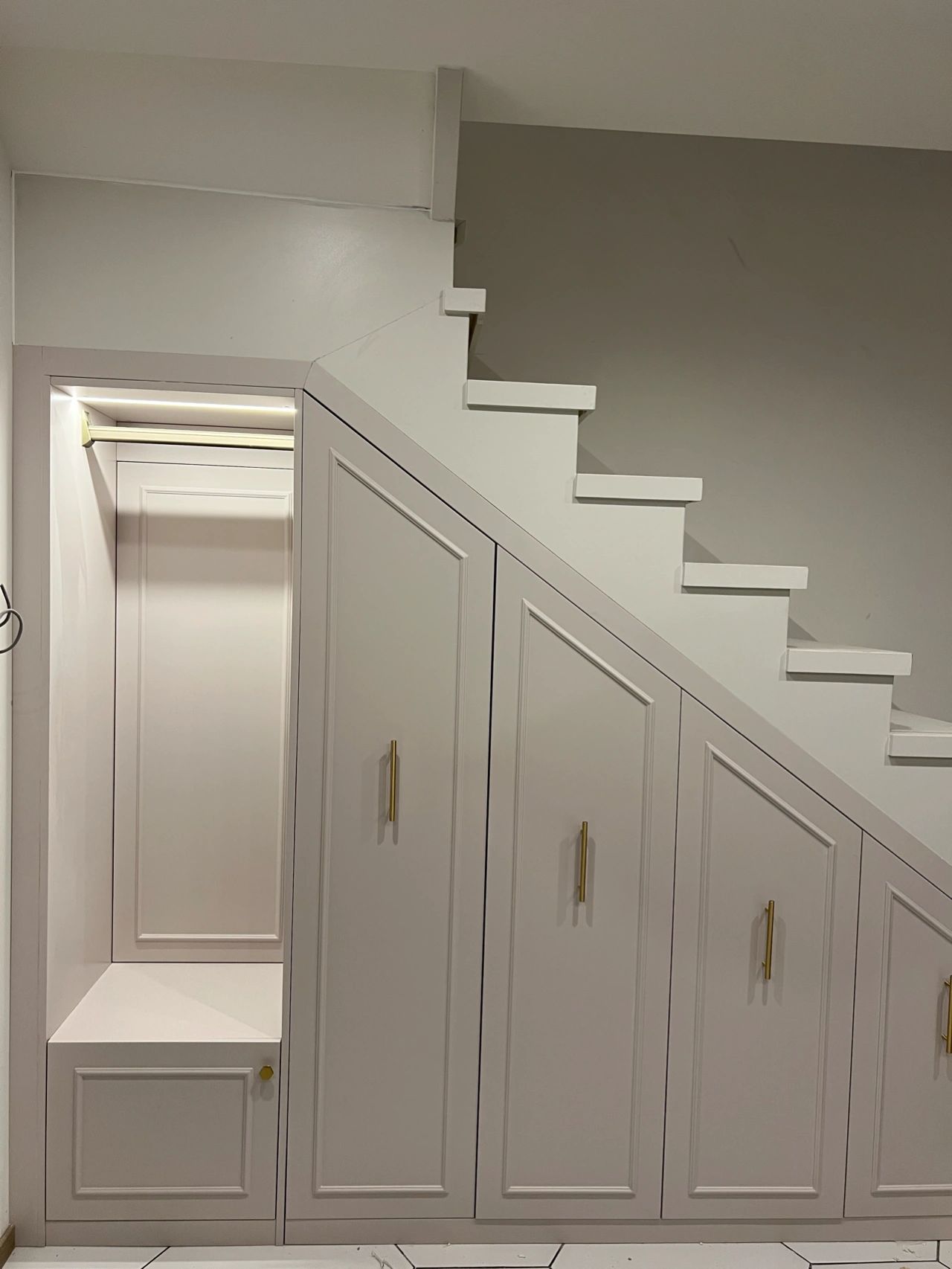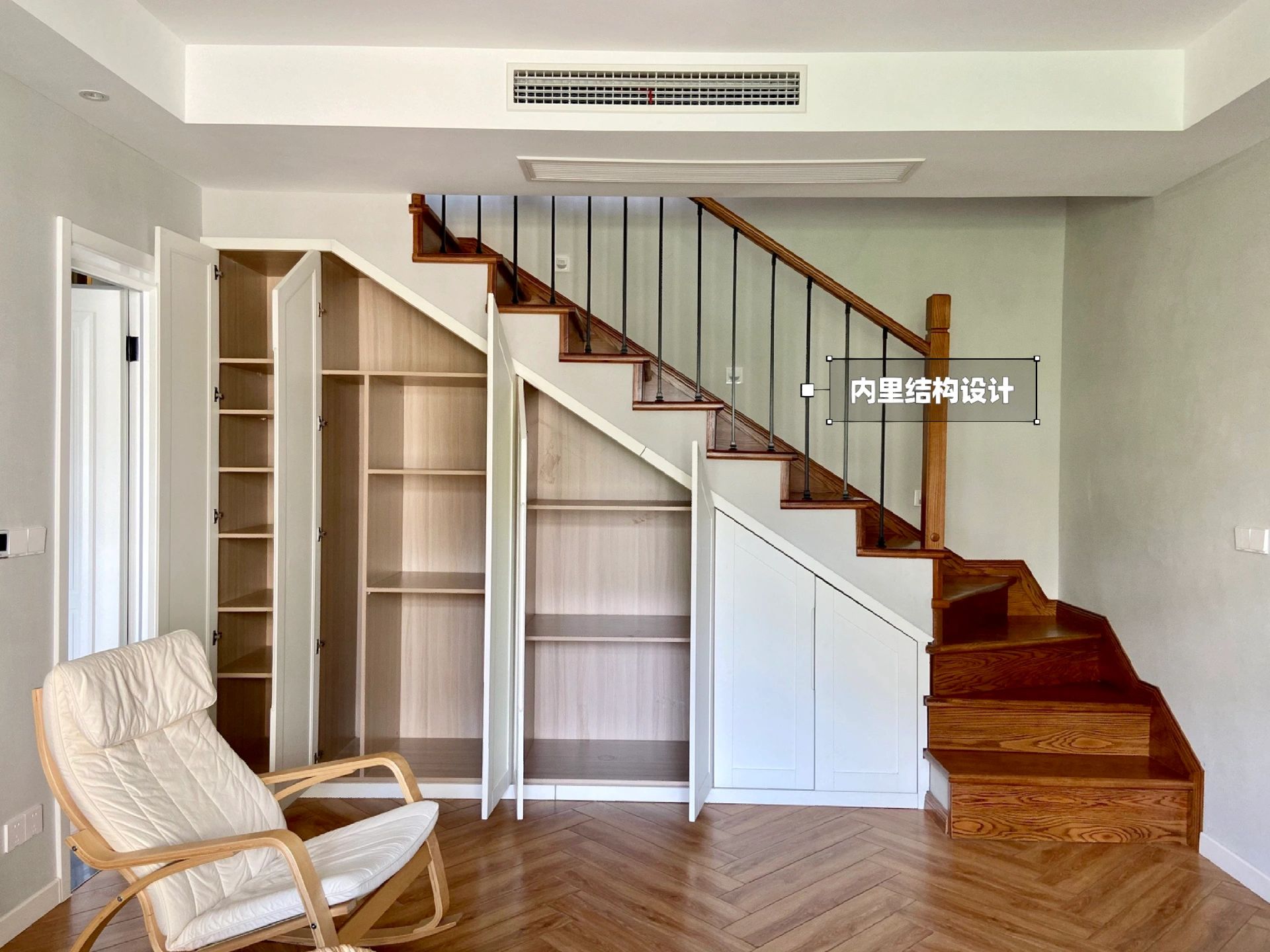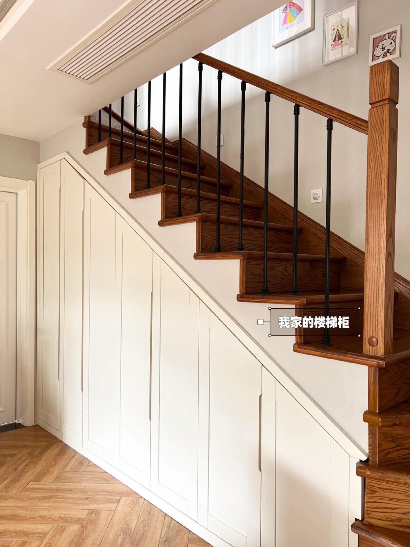 這幾款樓梯柜把實(shí)用和美觀焊死: 奶白柜門 + 內(nèi)嵌拉手,和樓梯融為一體不突兀;